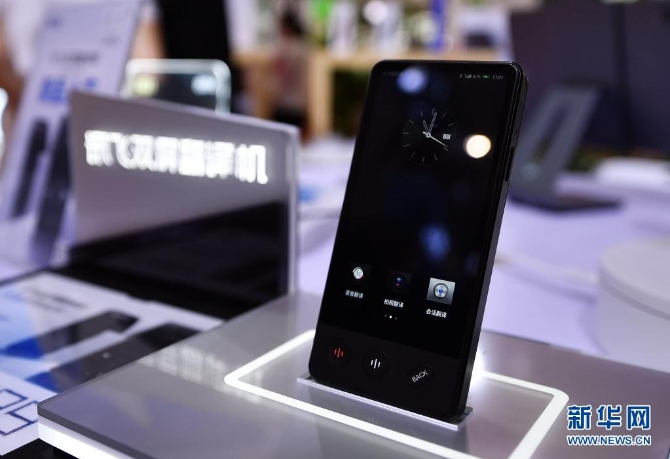 這是5月9日在首屆消博會上拍攝的科大訊飛新品雙屏翻譯機(jī)。新華社記者 郭程 攝