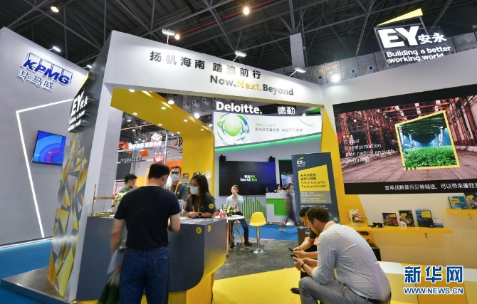 這是5月9日在首屆消博會上拍攝的畢馬威、德勤、安永等會計(jì)師事務(wù)所展臺。新華社記者 郭程 攝