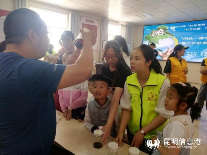 同在江邊住,入滇河道沿岸的居民對(duì)“母親河”了解多少呢?近日,新二社區(qū)組織百余名黨員群眾加入到了“為河水體檢”科普志愿活動(dòng)中。志愿者們從海河不同流段順利采集水樣后,在昆明市生態(tài)環(huán)境局官渡分局黨員的指導(dǎo)下進(jìn)行分析檢測(cè)?!澳?使用溶氧儀可以測(cè)出這份水樣的溶氧度,溶氧度是衡量水生動(dòng)植物生長(zhǎng)環(huán)境的一項(xiàng)重要指標(biāo)?!薄靶∨笥?你用滴管取一滴水樣滴在試紙上,看它是變藍(lán)還是變黃?”志愿者們一邊做實(shí)驗(yàn)一邊做記錄,用科學(xué)視角重新認(rèn)識(shí)身邊的“水世界”。