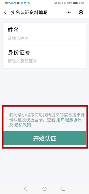 實(shí)名認(rèn)證資料填寫,勾選“同意政策”后點(diǎn)擊“開始認(rèn)證”