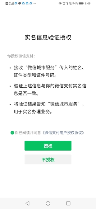 實(shí)名信息驗(yàn)證授權(quán),勾選“同意政策”,點(diǎn)擊“授權(quán)”