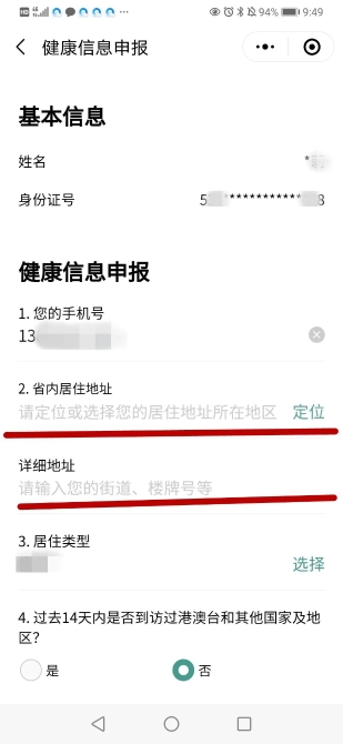 進(jìn)入“健康信息申報(bào)”頁面,填寫信息后提交