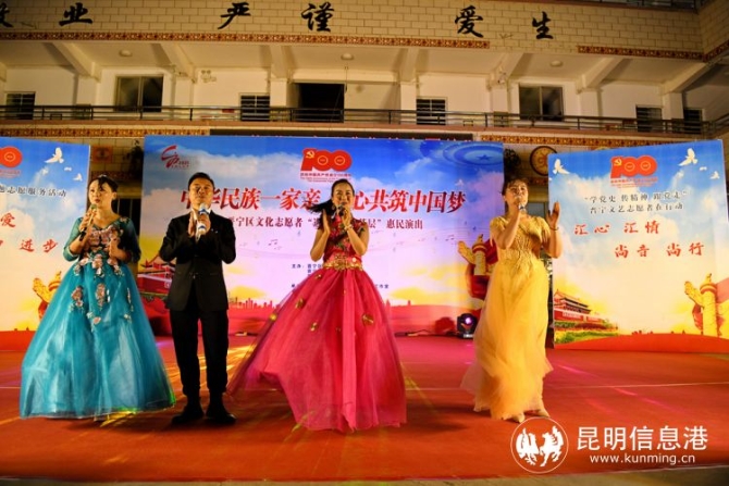 昆明信息港訊 記者甘凌菲 5月10日晚7點(diǎn)30分,晉寧“尚音尚行”志愿演出團(tuán)到雙河彝族鄉(xiāng)雙河民族小學(xué)進(jìn)行義演。來自區(qū)文聯(lián)所屬協(xié)會(huì)晉寧區(qū)音樂家協(xié)會(huì)的文藝志愿者們,為全校師生送來了一場高水平的文藝演出。