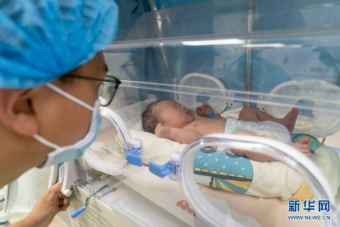 5月10日,李卓祥查看嬰兒培養(yǎng)箱里的一名新生患兒。新華社記者陳欣波/攝