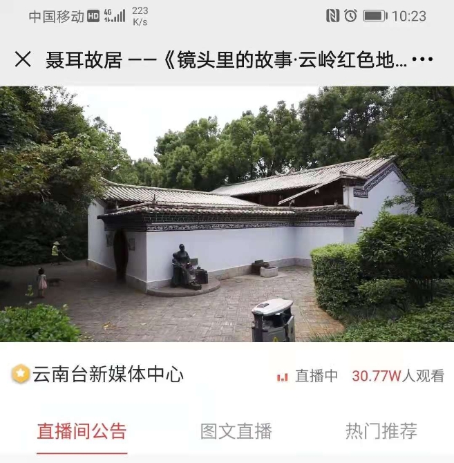 玉溪市民張敏鳳表示,《云嶺紅色地標巡禮》系列直播走進玉溪市聶耳故居,讓我第一次通過鏡頭看到偉大音樂家聶耳居住過的地方,一幕幕一幀幀勾勒出的歷史感,雖然隔著屏幕卻似恰在眼前。鏡頭里珍貴的歷史資料讓我進一步了解了人民音樂家聶耳偉大、光輝、燦爛的人生經(jīng)歷,感受到了革命青年拼搏進取、超越自我的民族精神和愛國主義精神,崇敬更甚,敬仰更深!我也再一次理解了“沒有中國共產(chǎn)黨,就沒有新中國”這句話的深刻內(nèi)涵。