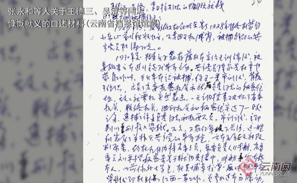 一則由云南省檔案館館藏的《張永和等人關(guān)于王德三、吳澄等同志慷慨就義的口述材料》紙頁(yè),將我們的思緒再一次帶回到了1930年的最后一天。