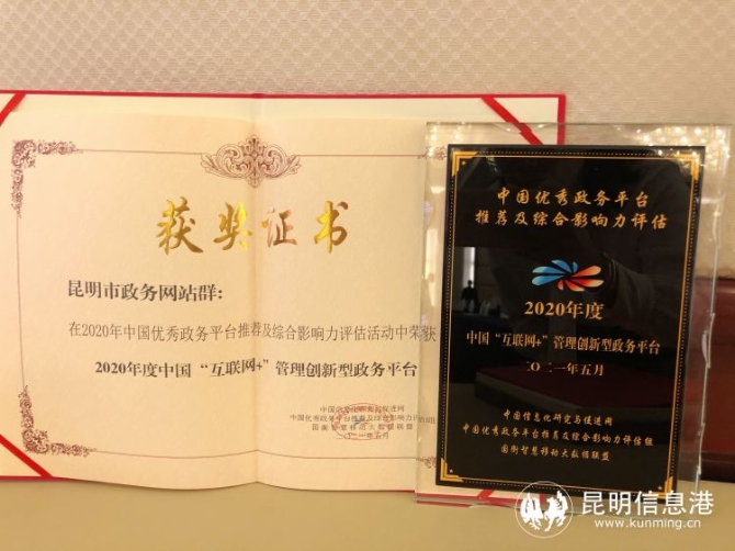 昆明市政務(wù)網(wǎng)站群獲得2020年度中國(guó)“互聯(lián)網(wǎng)+”管理創(chuàng)新型政務(wù)平臺(tái)