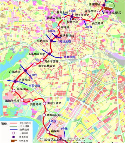 昆明地鐵5號線貫穿主城核心區(qū),沿線周邊環(huán)境和地質(zhì)條件復(fù)雜,線路不僅穿越圓通山片區(qū)巖溶地層、滇池片區(qū)軟弱泥炭土層,并穿越多處密集建筑群、既有鐵路和地鐵等,高風(fēng)險(xiǎn)點(diǎn)多,實(shí)施難度大。