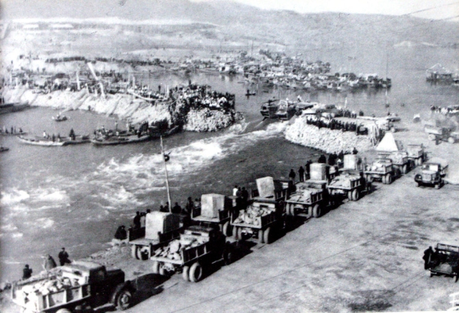 ↑1959年,丹江口大壩建設(shè)開始進(jìn)行漢江截流(資料照片)。