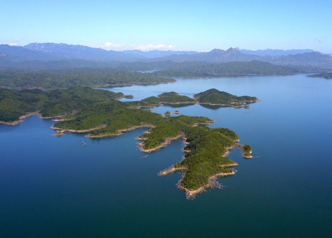 ↑南水北調(diào),讓北京“大水缸”——密云水庫蓄水量大增,水質(zhì)長期保持國家地表水環(huán)境質(zhì)量Ⅱ類標(biāo)準(zhǔn)。這是密云水庫風(fēng)光(無人機(jī)照片,2020年9月1日攝)。