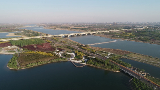 ↑南水北調(diào)生態(tài)補水,讓干涸了幾十年的石家莊母親河——滹沱河重現(xiàn)生機(jī)(無人機(jī)照片,2021年4月13日攝)。