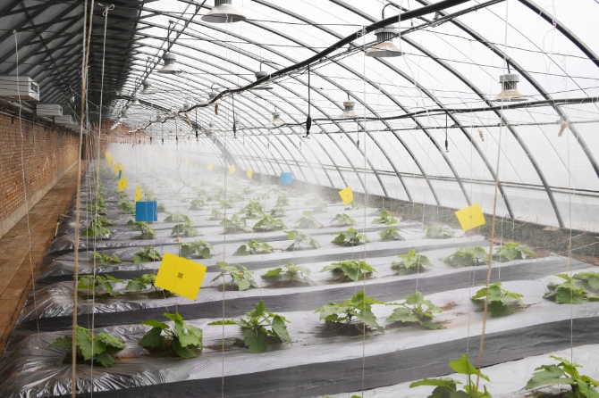 ↑北京海淀首農(nóng)莊園是一座新型農(nóng)業(yè)示范園。莊園蔬菜大棚采用滴灌與倒掛微噴相結(jié)合的雙系統(tǒng)灌溉模式,上下結(jié)合,精準(zhǔn)“投喂”,明顯降低了用水量(3月18日攝)。