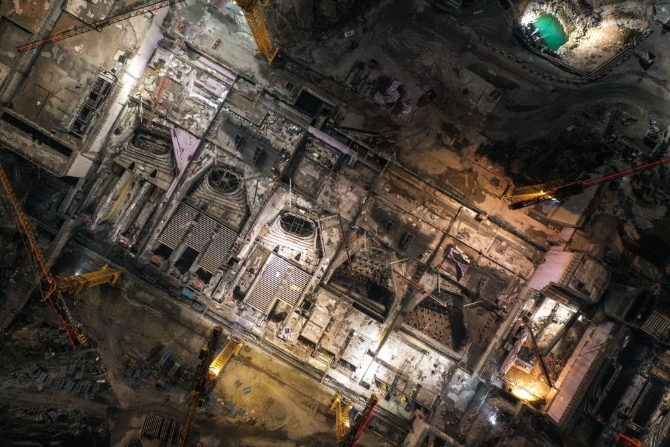 ↑大藤峽水利樞紐位于廣西桂平市西江流域上的黔江河段,是國務(wù)院確定的172項節(jié)水供水重大水利工程的標(biāo)志性工程。這是工程夜間建設(shè)現(xiàn)場(無人機(jī)照片,1月15日攝)。