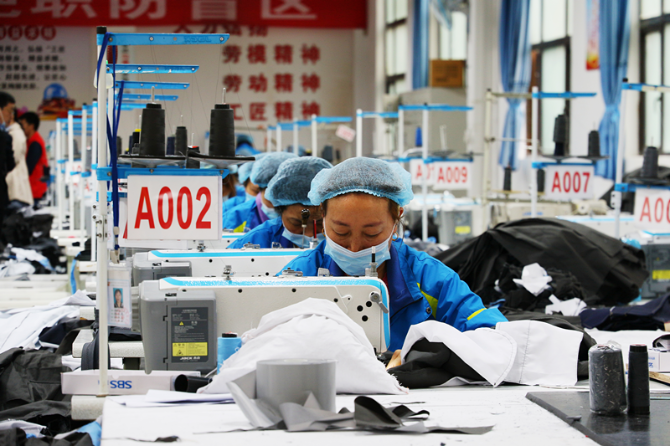 各地殘聯(lián)借助社會(huì)力量,拓展殘疾人就業(yè)渠道,通過(guò)與企業(yè)簽訂協(xié)議廣泛安置殘疾人就業(yè),進(jìn)一步鞏固拓展殘疾人脫貧成果。圖為在制衣廠中就業(yè)的殘疾人員工對(duì)織品進(jìn)行加工。