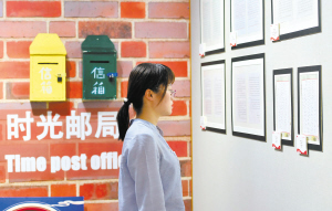 圖為展覽現(xiàn)場(chǎng)設(shè)置了“時(shí)光郵局”,鼓勵(lì)人們給家人寫一封家書。