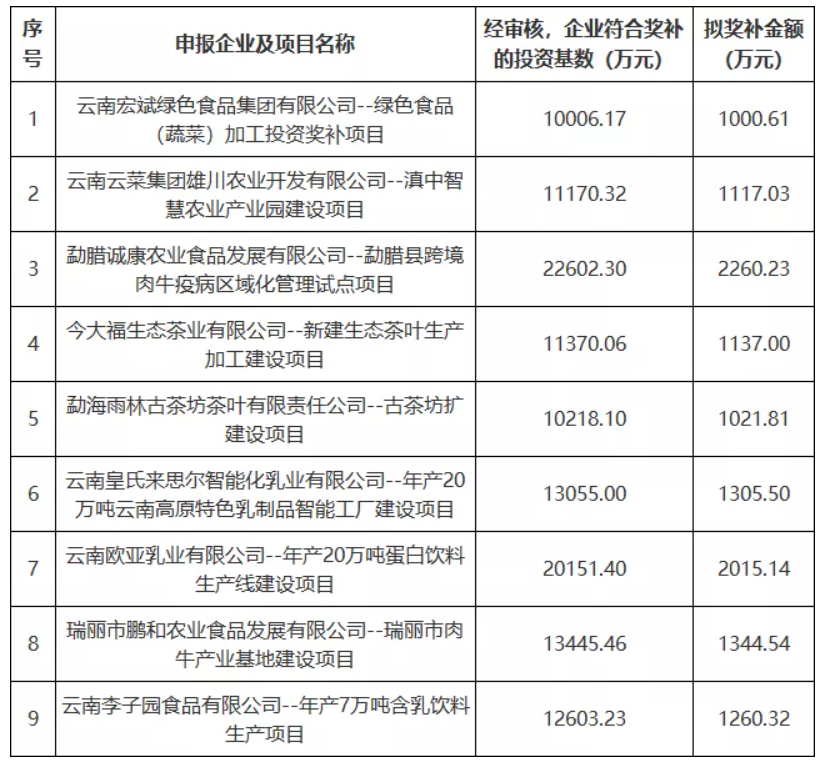 2020年綠色食品加工業(yè)龍頭企業(yè)投資獎(jiǎng)補(bǔ)政策擬支持項(xiàng)目名單