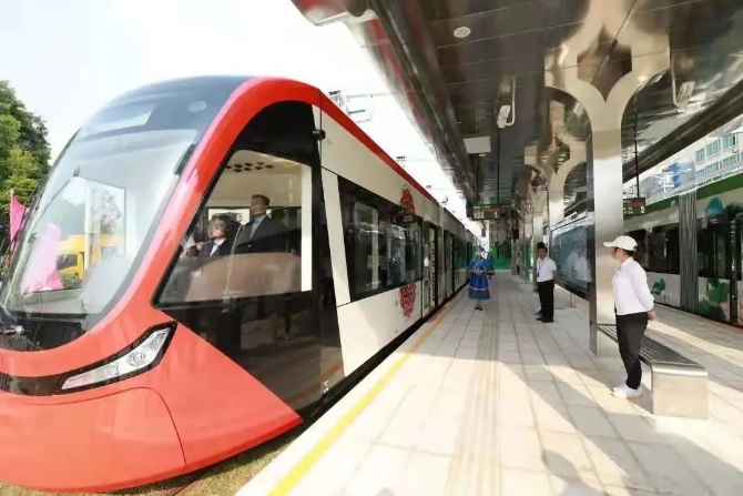 該項(xiàng)目是高海拔、高落差、高地質(zhì)狀況要求下實(shí)施的國內(nèi)首個(gè)縣級(jí)城市有軌電車項(xiàng)目,也是國內(nèi)首條高鐵站直達(dá)景區(qū)的便捷式城市有軌電車,極具示范效應(yīng)。
