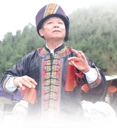 “在座鄉(xiāng)親聽我言,想想當(dāng)年多么難,不通電來不通水。到如今,天地寬,不愁吃來不愁穿?!鞭r(nóng)歷三月初三,在廣西隆林各族自治縣六郎屯的戲臺(tái)前,一場(chǎng)非遺文化演出別開生面;正戲還沒開鑼,梁智精先打起了快板……