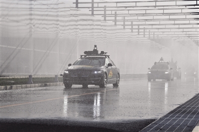 2020年11月12日,順義測試場,無人駕駛汽車進行雨淋測試。新京報記者李木易/攝