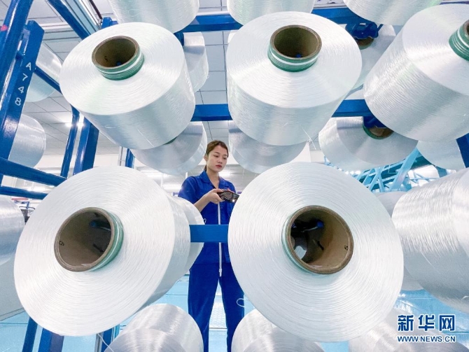 在位于江蘇省蘇州市吳江區(qū)的恒力化纖工業(yè)絲智能車間內,工作人員在通過二維碼讀取產品信息(2021年5月14日攝)。新華社記者 李博 攝