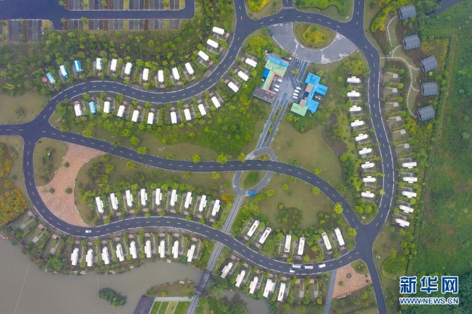 這是江蘇省常州市太湖灣露營谷(2021年5月12日攝,無人機照片)。新華社記者 李博 攝