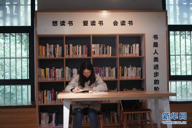 在江蘇省南京市江寧區(qū)秣陵街道殷巷社區(qū)一處小區(qū)內的睦鄰書房,一位女士在閱讀書籍(2019年11月6日攝)。新華社記者 季春鵬 攝