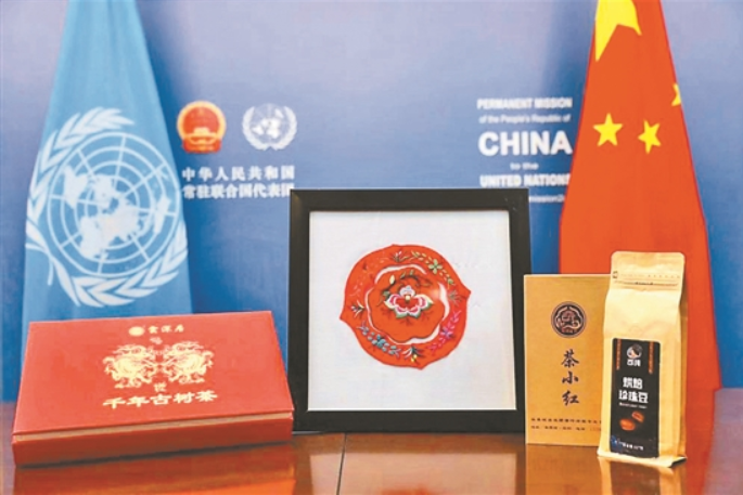 新華社聯(lián)合國5月18日電 記者 王建剛 王長山 楊靜 浦超 孫敏 謝鍔 近日,中國常駐聯(lián)合國代表、安理會5月輪值主席張軍贈送給安理會成員國代表一份禮物——中國云南的咖啡豆、千年古樹茶,以及壯族手工刺繡。