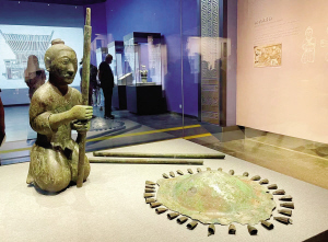 圖為在昆明市博物館青銅展上展出的“執(zhí)傘俑”。