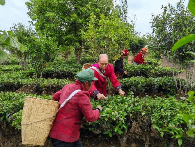 4月29日,云南省普洱市瀾滄縣的茶農(nóng)正在茶地里采茶 。刀劍龍攝