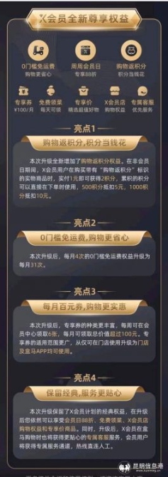 盒馬相關(guān)負(fù)責(zé)人表示,此次在昆明上線的x權(quán)益,將在此前的基礎(chǔ)上進(jìn)行了全新升級,價(jià)格不變,權(quán)益大幅升級:以前每月4次的零門檻免運(yùn)費(fèi)權(quán)益,升級為每月31次。