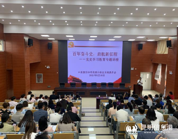 昆明信息港訊 記者黃彩英 通訊員梁丹 為迎接中國(guó)共產(chǎn)黨成立100周年,教育廣大黨員干部學(xué)黨史悟思想,以悟思想促進(jìn)辦實(shí)事,以辦實(shí)事推動(dòng)新局和引導(dǎo)全體教職工銘記紅色歷史、共話初心使命,黃岡中學(xué)昆明分校黨總支5月18日組織開展了“奮斗百年路 啟航新征程”主題黨史學(xué)習(xí)教育講座。