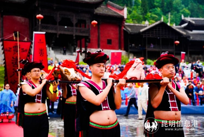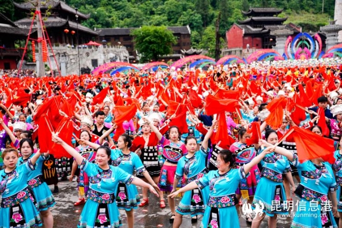 昆明信息港訊 記者徐毅杰 5月19日,2021全國百家融媒體記者苗鄉(xiāng)行活動正式啟動。來自全國各地融媒體記者齊聚彭水蚩尤九黎城,觀苗家建筑群,賞苗族歌舞,并利用新聞網(wǎng)站、APP客戶端、網(wǎng)絡(luò)直播、微博微信互動等方式集中宣傳彭水的苗家風(fēng)情。