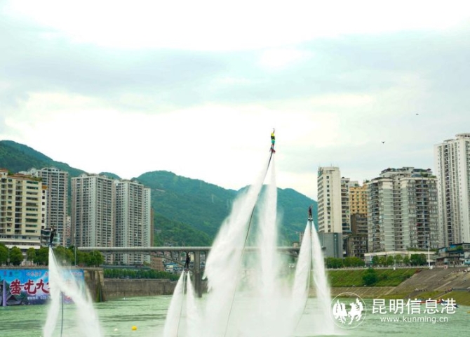 轟鳴的馬達、激蕩的浪花、風馳電掣的速度。觀眾被摩托艇競速表演秀所吸引…水上飛人表演引來了觀眾的尖叫,只見他們腳踩助推器,在水面上上升、旋轉(zhuǎn)、翻跟頭,這極具觀賞的表演引得觀眾們從座位上站起來,為他們鼓掌喝彩。
