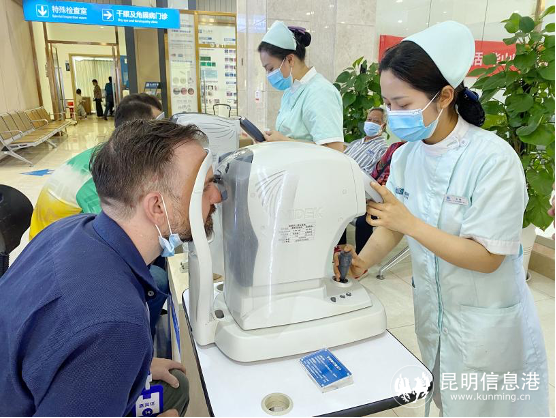 為了讓外教們進(jìn)一步了解自己的眼部情況,沙龍結(jié)束后,艾維眼科的醫(yī)護(hù)人員為他們進(jìn)行測(cè)視力、測(cè)眼壓、電腦驗(yàn)光、裂隙燈檢查、干眼螨蟲檢查等檢查項(xiàng)目。