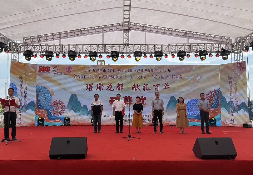 昆明信息港訊 通訊員楊玲 馬鴻超 5月19日,由中共昆明市呈貢區(qū)委宣傳部、昆明市呈貢區(qū)文化和旅游局主辦的“璀璨花都· 獻(xiàn)禮百年”——2021年昆明市呈貢區(qū)第六屆職工藝術(shù)節(jié)系列活動(dòng)及第十一屆“大家樂(lè)”廣場(chǎng)(健身)舞大賽在七彩云南第壹城啟幕。