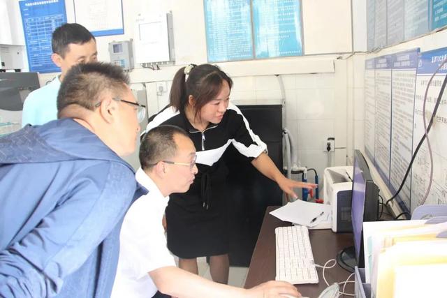圖為調(diào)查組檢查污水處理廠在線監(jiān)測情況。
