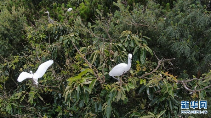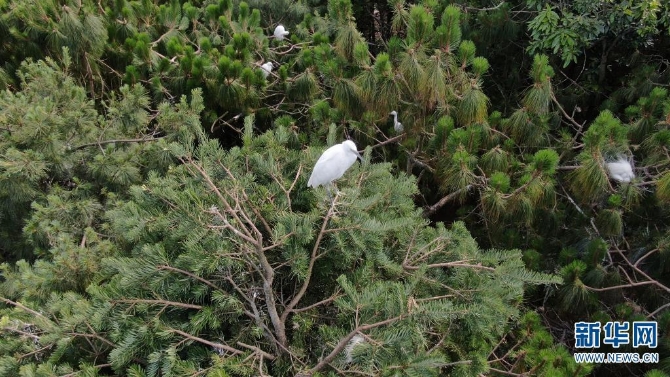 鷺群在古樹上棲息(攝于5月13日)。新華網(wǎng)發(fā)(吳振坤 攝)