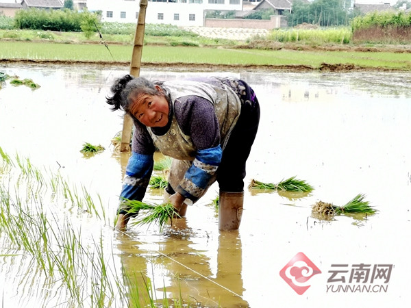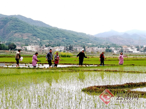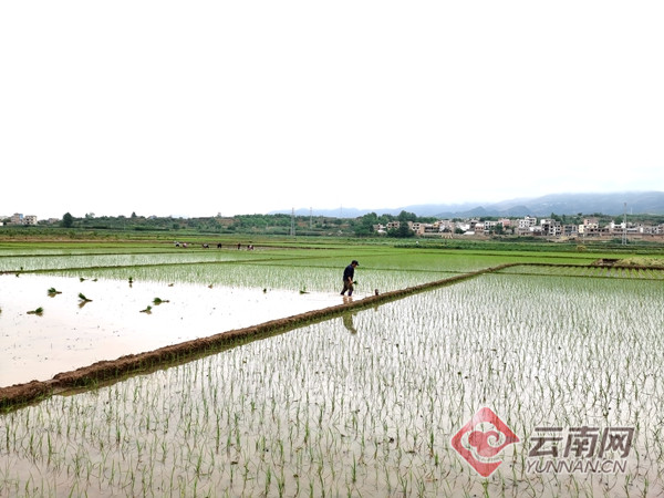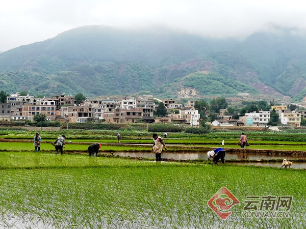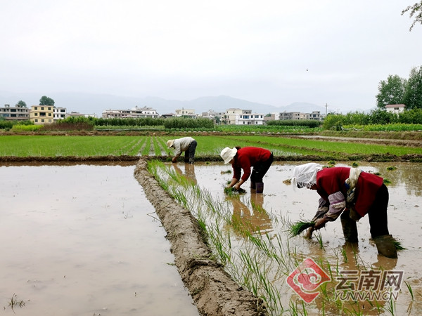 初夏時節(jié),昭陽區(qū)雨水充沛,當(dāng)?shù)厝罕娒χ鹧怼⒉逖?,田間地頭呈現(xiàn)出一派繁忙的勞作景象。5月23日,云南省昭通市昭陽區(qū)樂居鎮(zhèn)村民正在栽插水稻秧苗。(云南網(wǎng) 記者謝毅 通訊員馬進榮)
