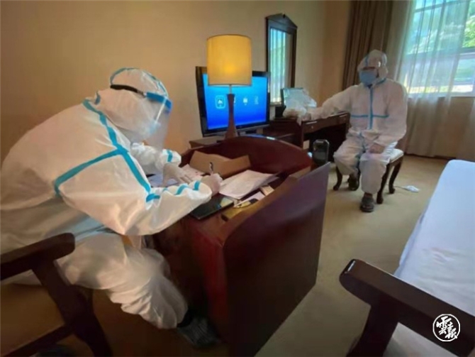 11月的孟定,氣溫高達30多攝氏度,為防止交叉感染,密不透風的審訊室里不能開空調(diào)。張子權(quán)和戰(zhàn)友穿著厚重悶熱的防護服和尿不濕,扎進審訊室里連續(xù)奮戰(zhàn)22天,通過曉之以理闡述全國防疫大局,最終讓犯罪嫌疑人交代出了上下游信息。