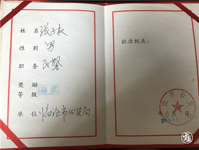 張子權(quán)獲得的嘉獎證