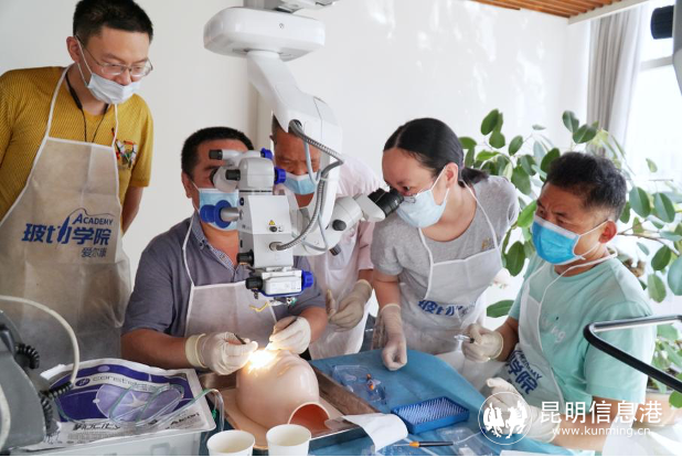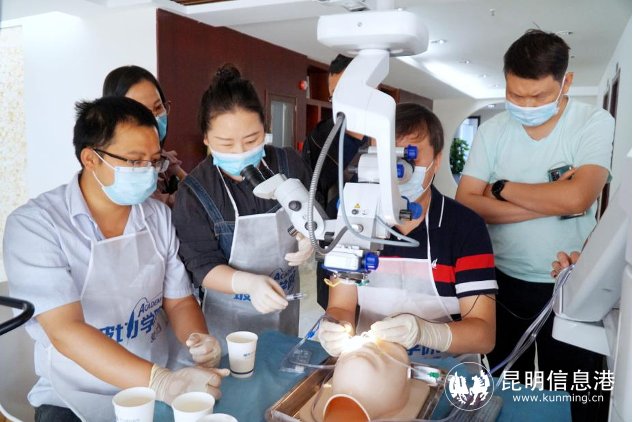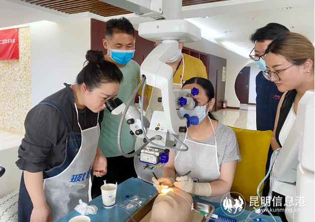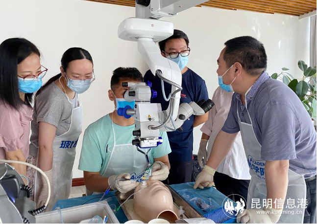 昆明艾維眼科醫(yī)院眼底病??魄f靜醫(yī)生(左三)指導(dǎo)學(xué)員