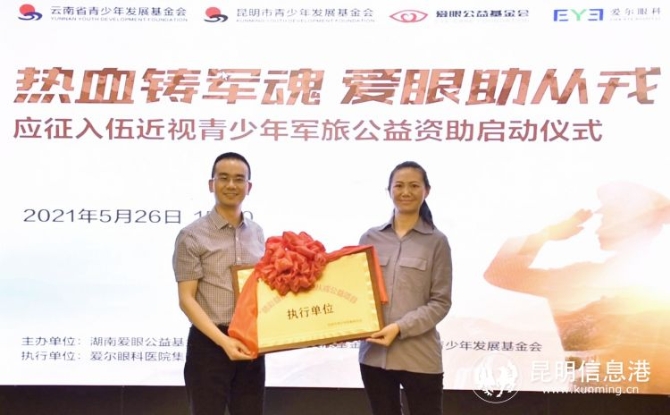 昆明市青少年發(fā)展基金會(huì)授予愛爾眼科為“熱血鑄軍魂·愛眼助從戎”公益項(xiàng)目執(zhí)行單位。