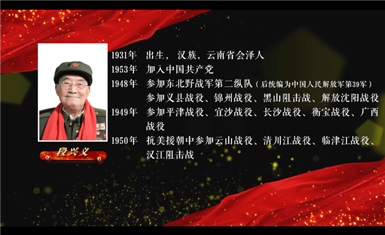 17歲那年,段興義就參了軍,進(jìn)入東北野戰(zhàn)軍第二縱隊(duì),先后參加義縣戰(zhàn)役、錦州戰(zhàn)役,黑山阻擊戰(zhàn)、解放沈陽(yáng)戰(zhàn)役。1949年,時(shí)年18歲的段興義又參加了平津戰(zhàn)役、宜沙戰(zhàn)役、長(zhǎng)沙戰(zhàn)役、衡寶戰(zhàn)役、廣西戰(zhàn)役。