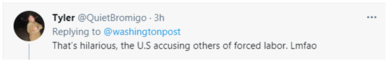 但不少網(wǎng)友對(duì)此不甚贊同。有網(wǎng)友感覺這頗為可笑, “那真是滑稽,美國指責(zé)其他人強(qiáng)迫勞動(dòng)。笑死我了?!?/p>