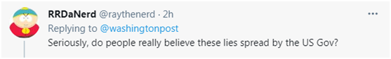 也有網(wǎng)友提到,“說真的,人們真的相信美國政府散布的這些謊言嗎?”