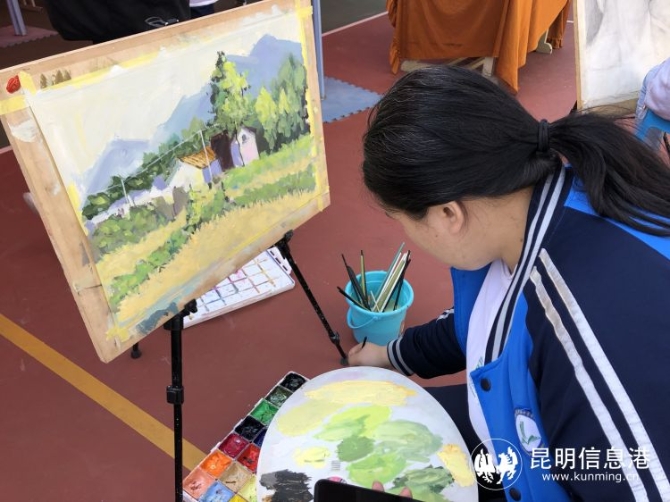 在美術(shù)展區(qū),同學(xué)們進(jìn)行現(xiàn)場創(chuàng)作。記者上官艷君 攝