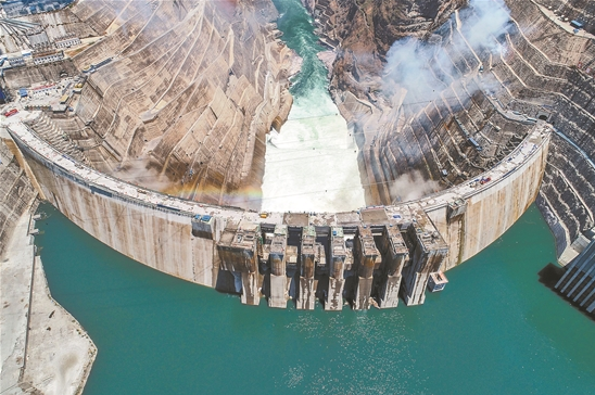 5月31日12時(shí)07分,弧長709米的拱壩壩頂完美地呈現(xiàn)在金沙江上——白鶴灘水電站工程大壩全線澆筑到頂,為7月1日前實(shí)現(xiàn)首批機(jī)組投產(chǎn)發(fā)電奠定了堅(jiān)實(shí)基礎(chǔ)。