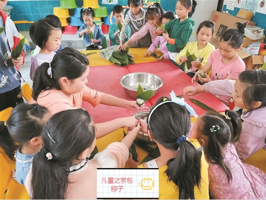 兒童之家端午節(jié)組織農(nóng)村留守兒童開展包粽子比賽活動