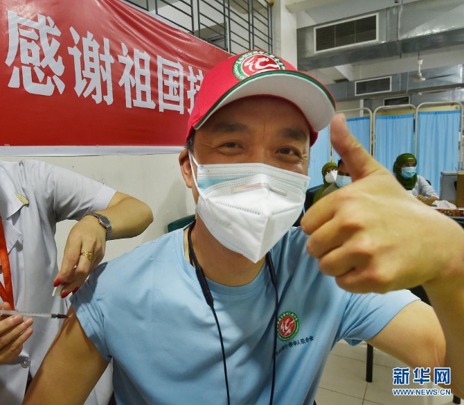 5月29日,一名中國公民在孟加拉國首都達(dá)卡接種中國新冠疫苗。新華社發(fā)
