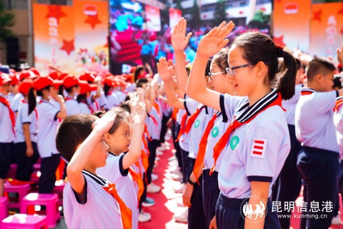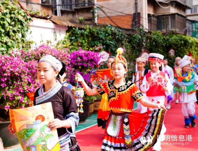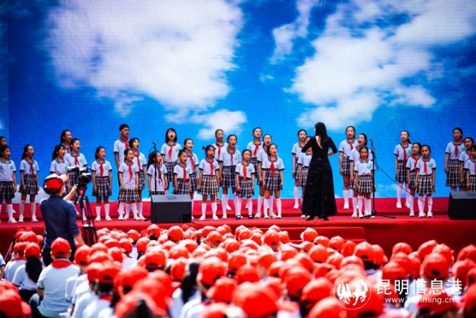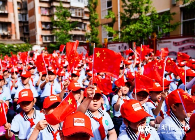 昆明信息港訊 記者徐毅杰 “紅星閃閃放光彩,紅星燦燦暖胸懷,紅星是咱工農(nóng)的心,黨的光輝照萬(wàn)代……”伴隨著《紅星閃閃》音樂的響起,百名身穿少數(shù)民族服飾的孩子們手拿自己制作的禮物,走上紅色地毯鋪就的百米民族“團(tuán)結(jié)大道”,歡快地唱跳著穿過(guò)兩扇民族團(tuán)結(jié)“同心門”,最終來(lái)到民族“花朵園”,帶著自己制作的禮物組成100字樣,為喜迎中國(guó)共產(chǎn)黨成立一百周年獻(xiàn)上祝福。